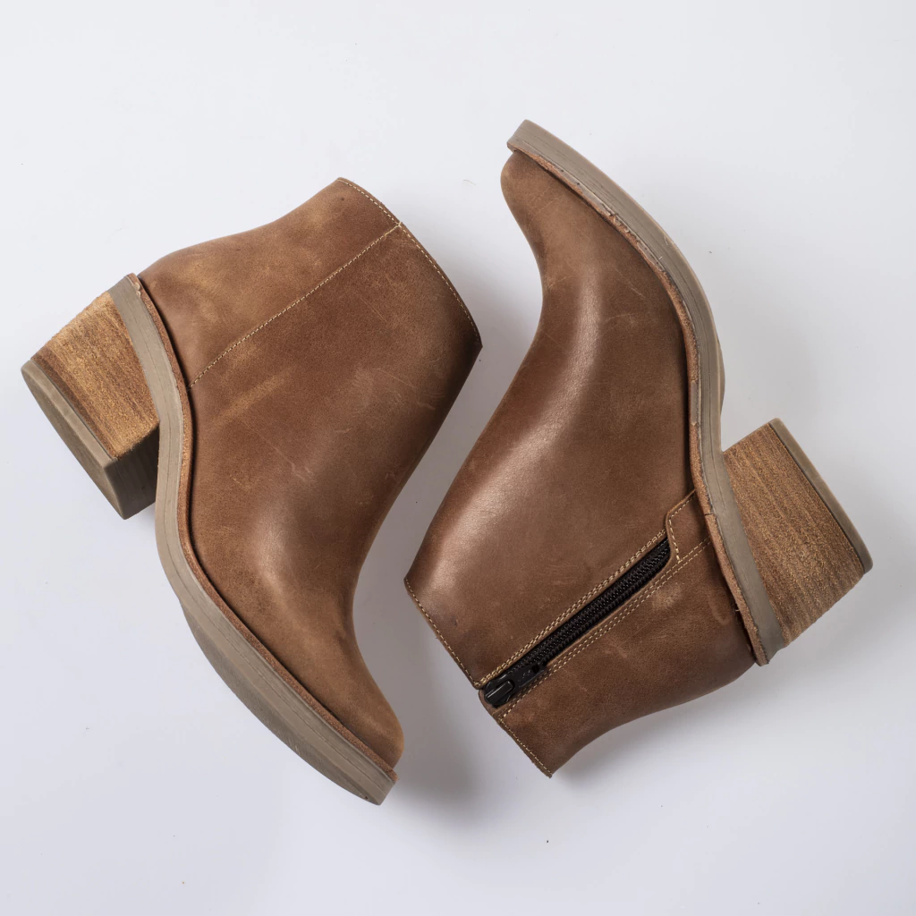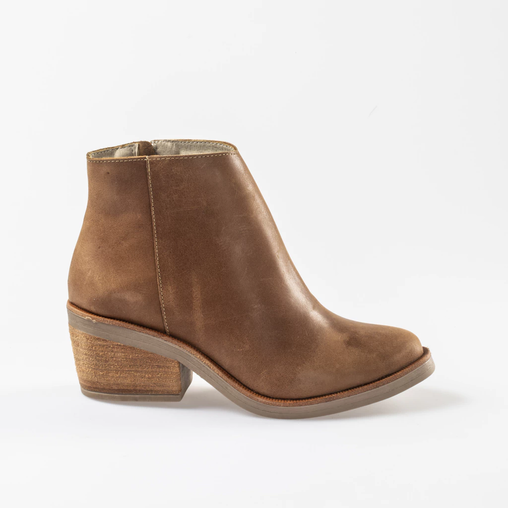 Bota de caña baja confeccionada en cuero vacuno, cierre interno, suela de TR
