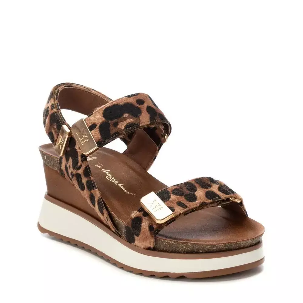 Sandalia de la marca Xti, un básico esencial de la temporada que combina comodidad y estilo. Fabricada en material que imita la piel con animal print, presenta detalles metalizados que le aportan un acabado moderno y sofisticado. Su cierre con tira adherente permite un ajuste rápido y seguro.